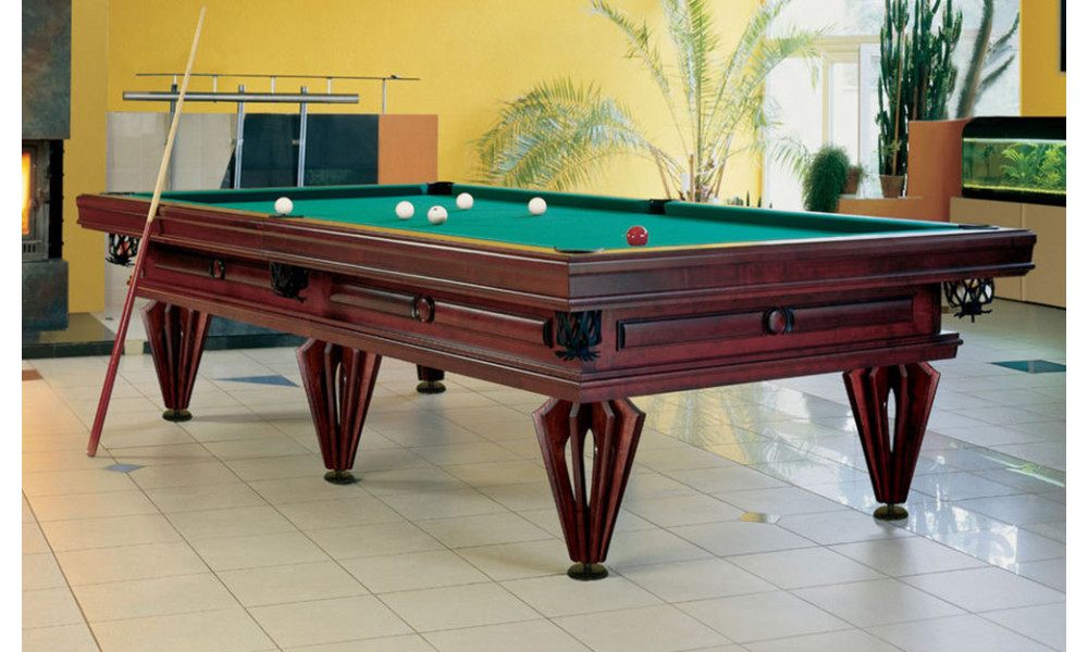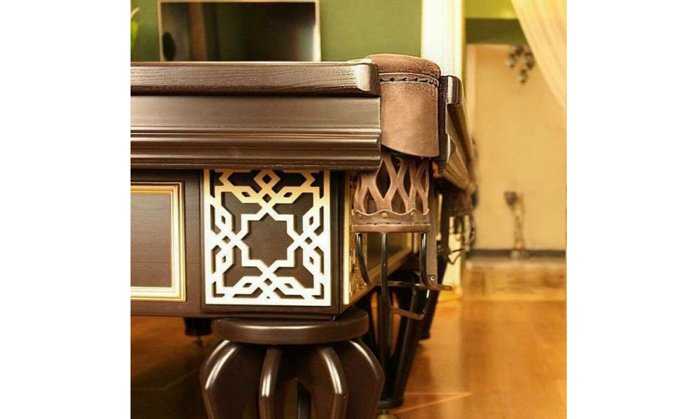 Бургундия – это элитный бильярдный стол, для которого характерны уникальные особенности, о чем, несомненно, должен знать каждый. Утонченные детали из позолоты наилучшим образом слились воедино с натуральной древесиной. Геометрия форм и богатый стиль – то, что действительно нужно для современной модели стола для бильярда. Лузы стола обрамлены при помощи вставок из натуральной потертой замши, что привносит в дизайн некую древность. Нельзя не отметить и стильные ножки стола для бильярда из новой коллекции. Они изготовлены в виде маленьких, но детализированных паучков. Где вы еще сможете встретить такой эксклюзив? Согласитесь, что о таком бильярдном столе мечтает каждый, ведь он вписывается в любой интерьер.